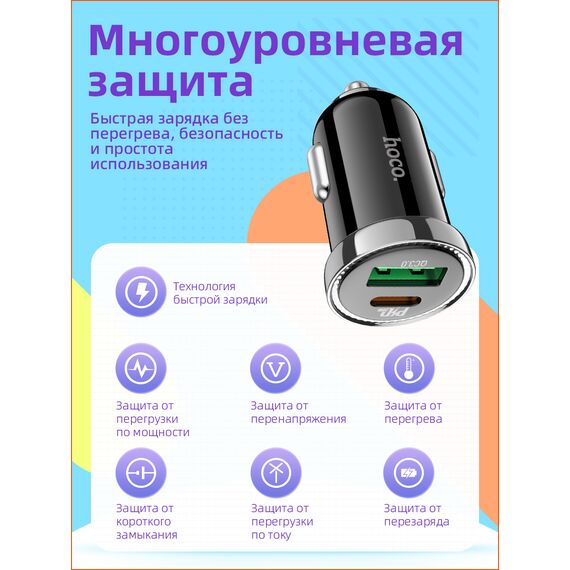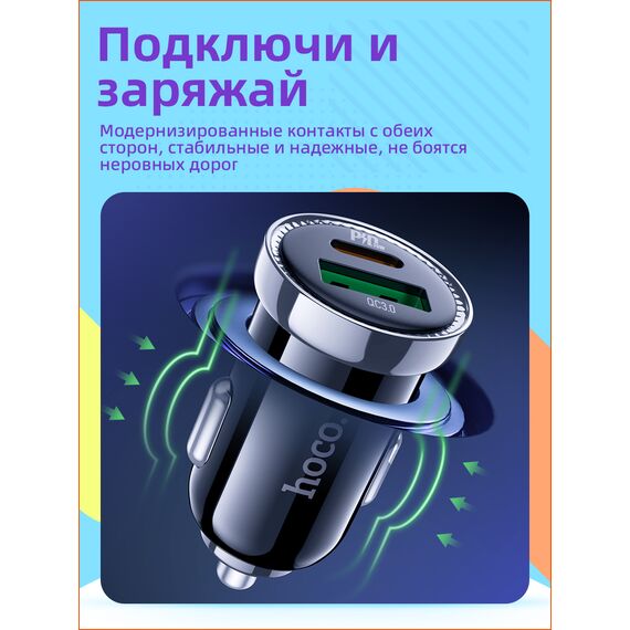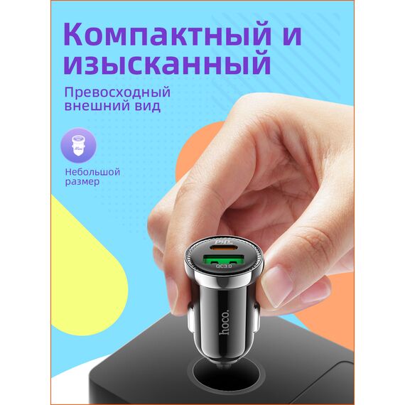 Характеристики Автомобильное зарядное устройство Hoco Z44 Leading PD20W+QC3.0 car charger Black
