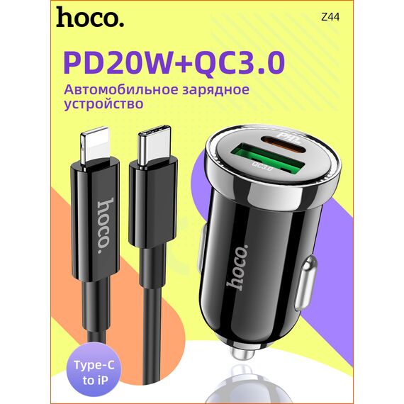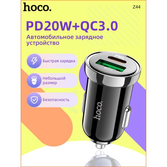АЗУ HOCO Z44 Leading PD20W+QC3.0 car charger, black