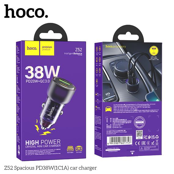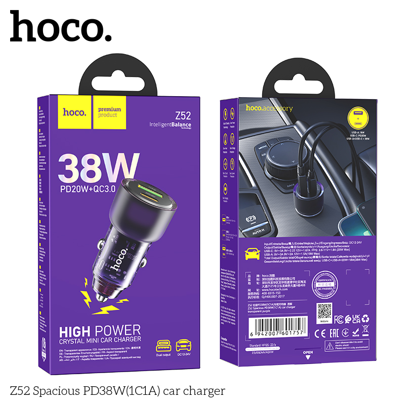 АЗУ HOCO Z52 Spacious PD38W 1C1A прозрачно фиолетовый