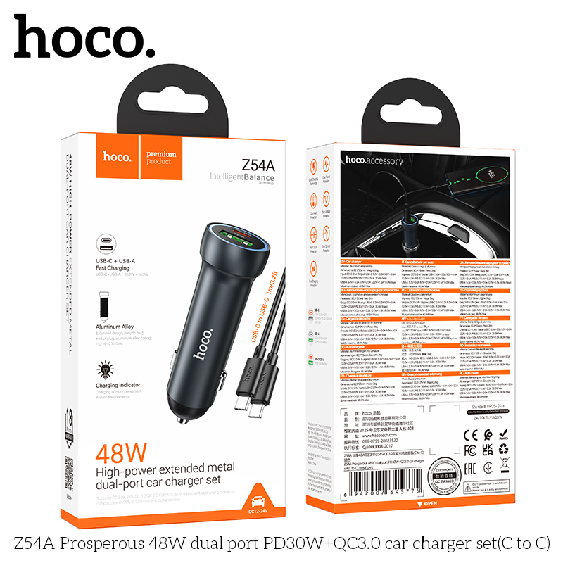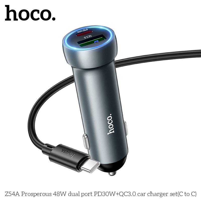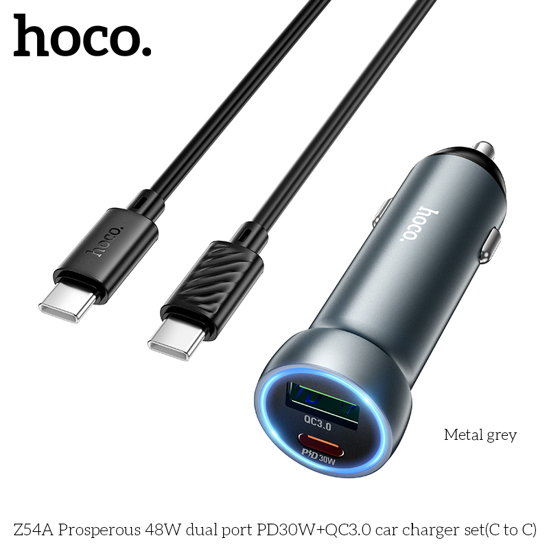 АЗУ HOCO Z54A Prosperous 48W dual port PD30W+QC3.0 + cabel C to C металлически серый