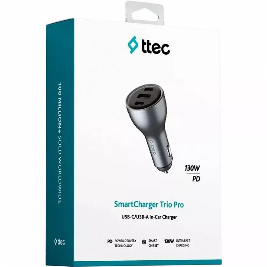 АЗУ TTEC 2CKP05S SmartCharger Trio PD 130W Car Fast Charger 2 USB-C + USB-A Black