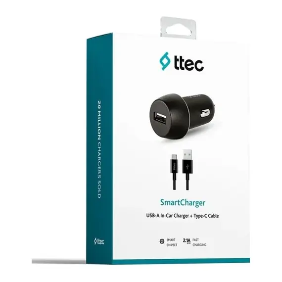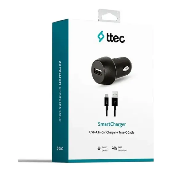 АЗУ TTEC 2CKS20CS SmartCharger In-Car Charger 2.1A + USB-C Cable Black