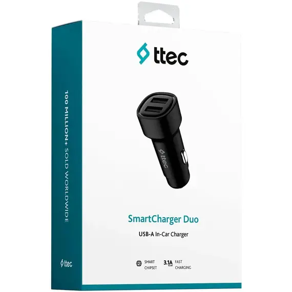 АЗУ TTEC 2CKS31S SmartCharger Duo 3.1A Car Charger Dual USB-А Black
