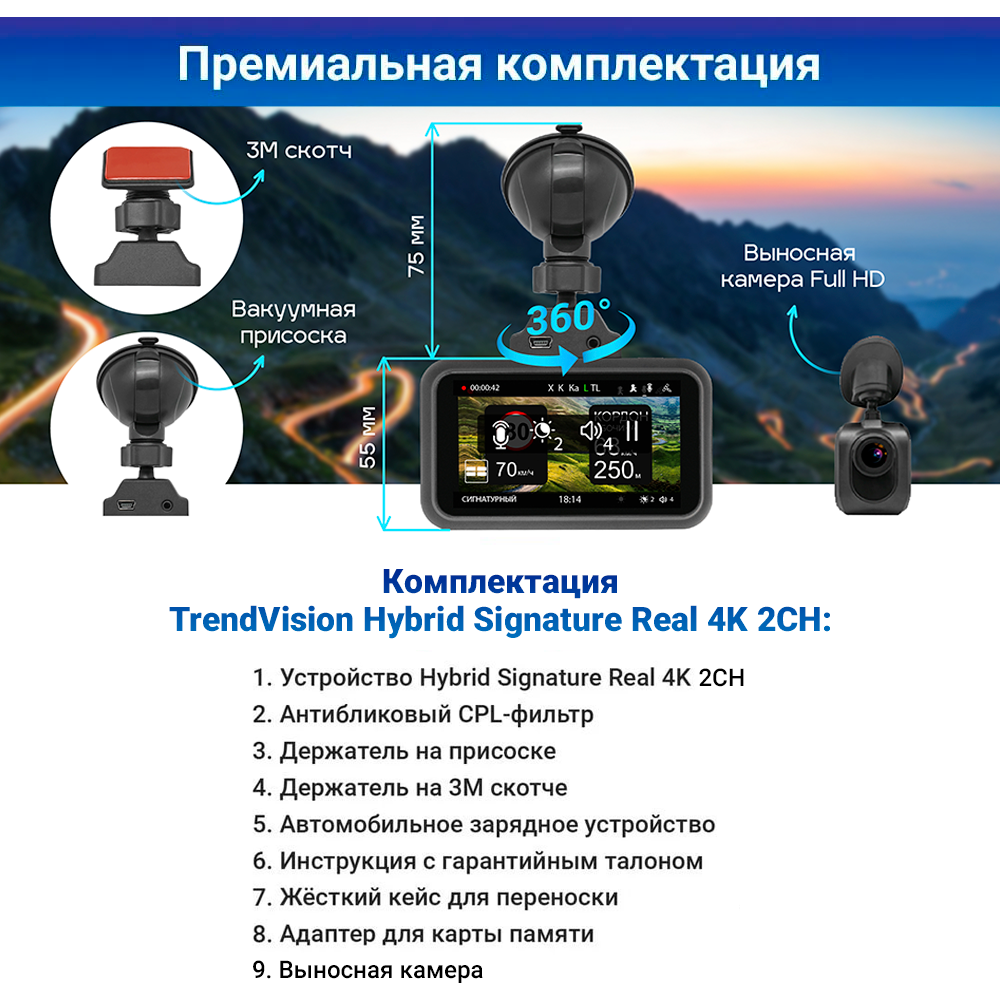 Видеорегистратор с радар-детектором TrendVision Hybrid Signature Real 4K 2CH GPS ГЛОНАСС