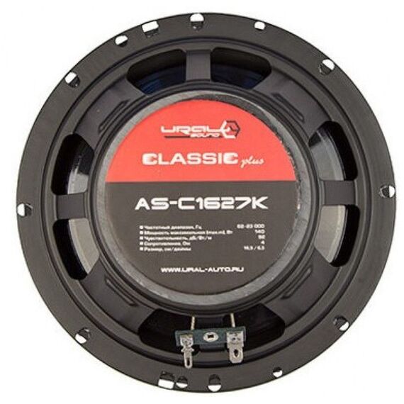 двухполосные, форма колонок- круглая, типоразмер 16.5 см (6 1/2 дюйм.), глубина установки 62мм, тип: компонентные, максимальная мощность: 140Вт