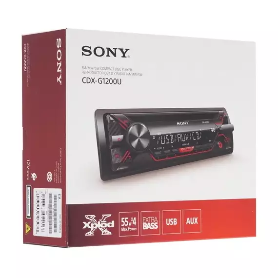 Автопроигрыватель Sony CDX-G1200U востребованного типоразмера 1 DIN с 4-канальным усилителем обеспечивает воспроизведение реалистичного звучания во время поездок. Режим EXTRA BASS способствует воспроизведению насыщенного экспрессивного баса. С помощью 10-полосного эквалайзера можно настраивать параметры звучания по собственным предпочтениям. Автопроигрыватель оборудован приводом дисков CD, разъемами AUX и USB для подключения к устройствам воспроизведения. На фронтальной панели расположены дисплей TFT с белой подсветкой символов и кнопки с красной подсветкой. Среди прочих особенностей Sony CDX-G1200U отмечается FM-радио.
