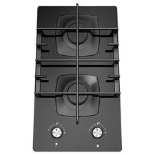 газовая варочная панель поверхность из закаленного стекла 2 газовые конфорки переключатели поворотные электроподжиг независимая установка габариты (ШхГ) 30x53 см