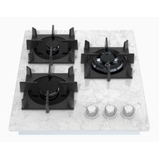 Общие характеристики Тип подключения Газ Количество зон приготовления 3 Цвет модели Белый Дизайн Мрамор Материал варочной поверхности Стекло Материал решеток варочной поверхности Чугун Газ-контроль горелок стола Да Электророзжиг горелок стола Розжиг встроен в ручки Таймер Нет...