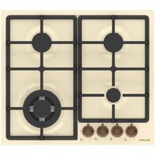 Управление с помощью поворотных переключателей Кремовое закаленное стекло Оригинальные конфорки SABAF 1 мощная конфорка 2,6 кВт 2 стандартные конфорки 1,75 кВт 1 экономичная конфорка 1,0 кВт Чугунные решетки Система GasControl Электроподжиг Исполнение: без рамки Изготовитель -...