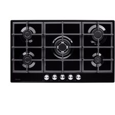газовая варочная панель поверхность из закаленного стекла 5 газовых конфорок трехконтурная конфорка переключатели поворотные электроподжиг независимая установка габариты (ШхГ) 75x51 см