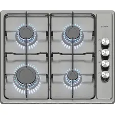 газовая варочная панель поверхность из нержавеющей стали 4 газовые конфорки переключатели поворотные электроподжиг независимая установка габариты (ШхГ) 59x51 см